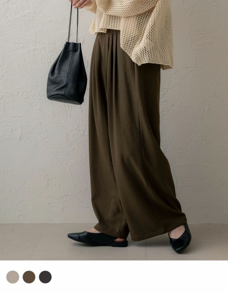 MIXツイルのナチュラルな素材感がお洒落なワイドパンツ。
