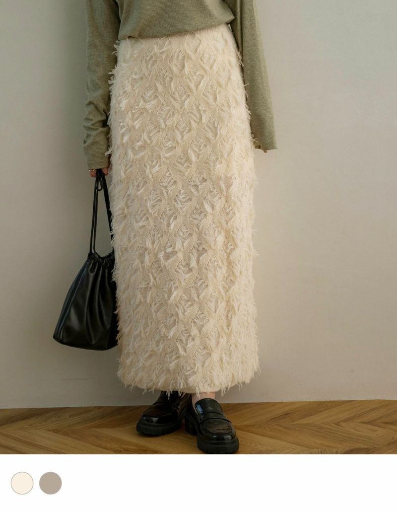 同素材の「フリンジニットプルオーバー」とセットアップでご着用できます。