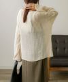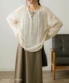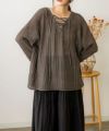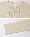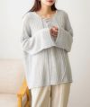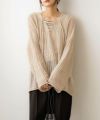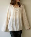 はしご編みの程よい透け感とフロントのレースアップデザインが女性らしい透かし編みプルオーバー。