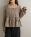 さりげない甘さを添えるフリルデザインが魅力のブラウス。 ウエストラインに施された2段のフリルが、ふんわりとしたシルエットをつくり出し、 体のラインを拾いすぎず華やかさを演出します♪ デコルテをきれいに見せてくれるスクエアネックと、ほんのり透け感のある素材が上品な印象に。 カジュアルにもきれいめにも合わせやすく、デイリーからお出かけまで幅広く活躍する1枚です♪