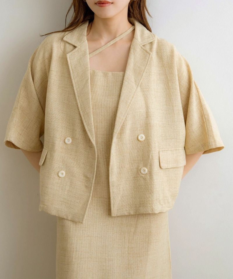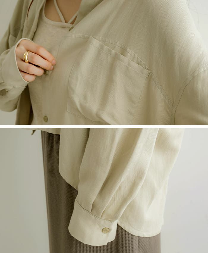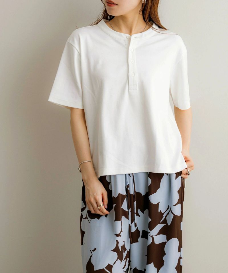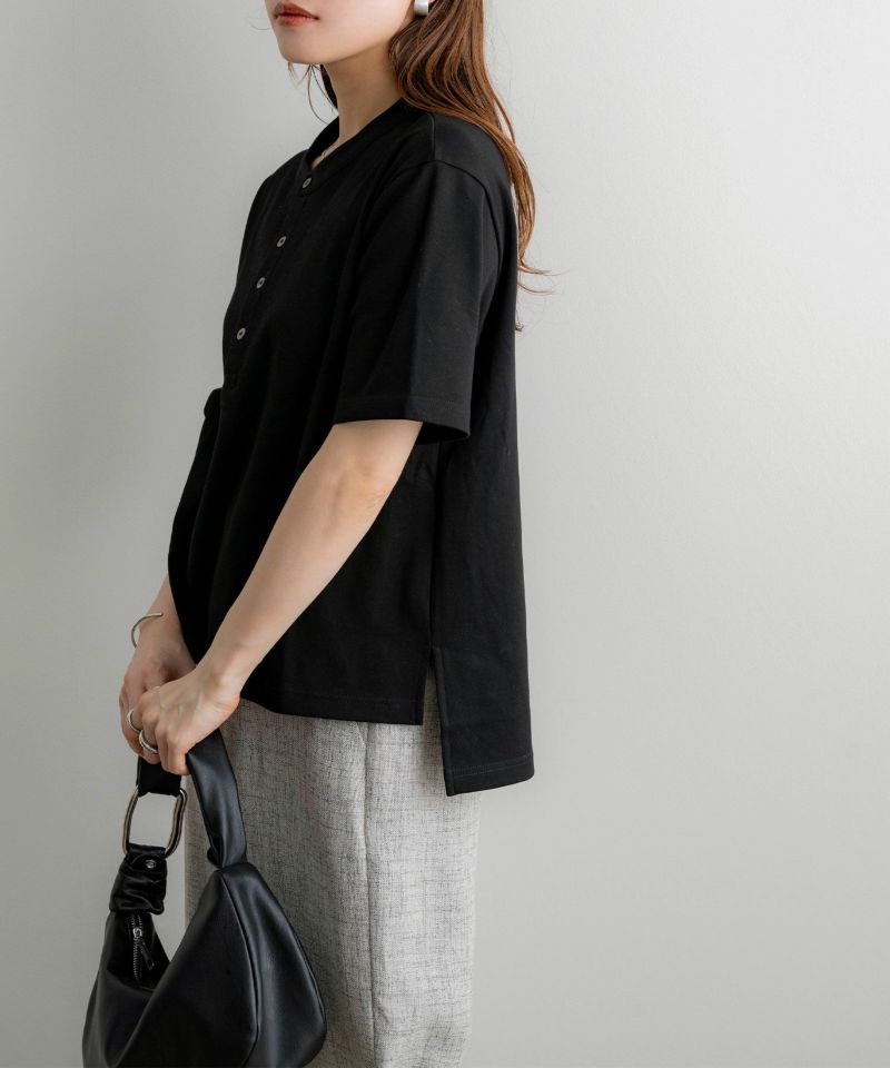 《accoさんコラボ》ストレッチコットンヘンリーネックTシャツ