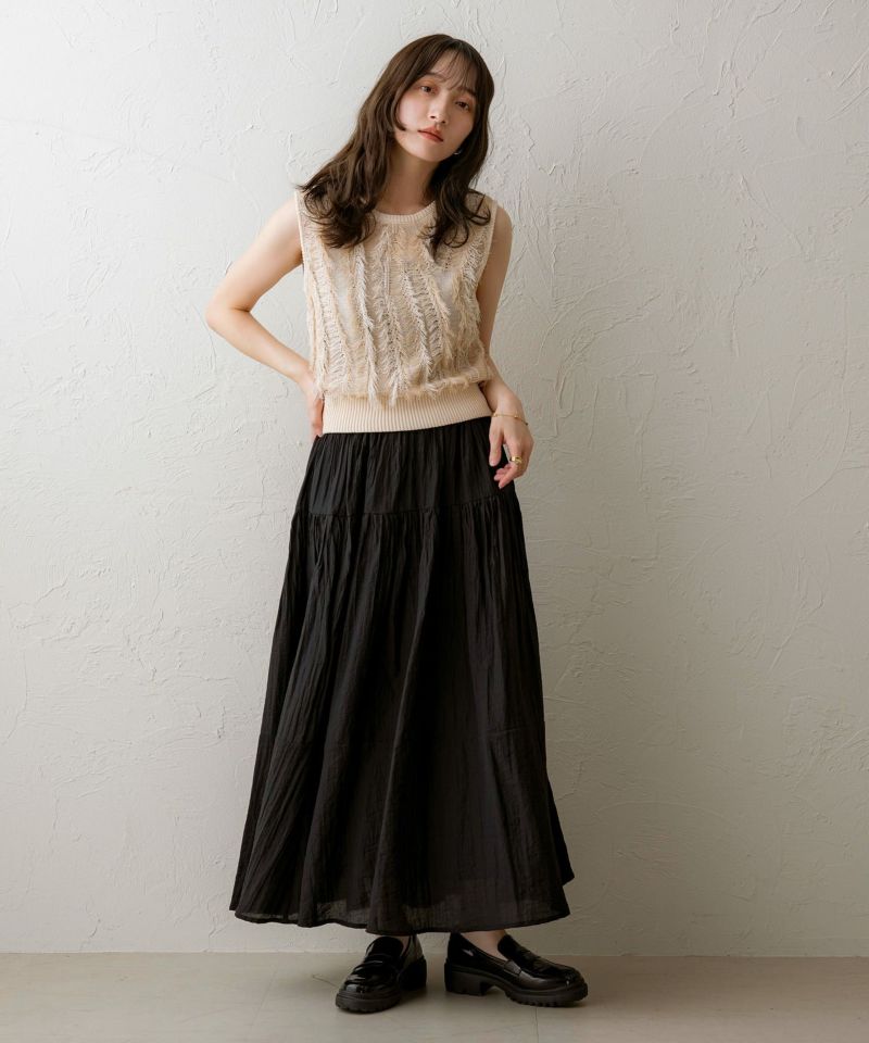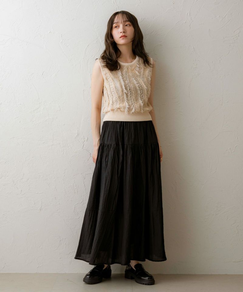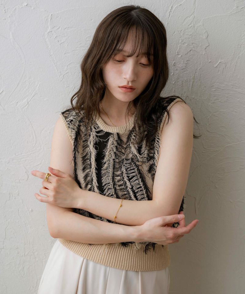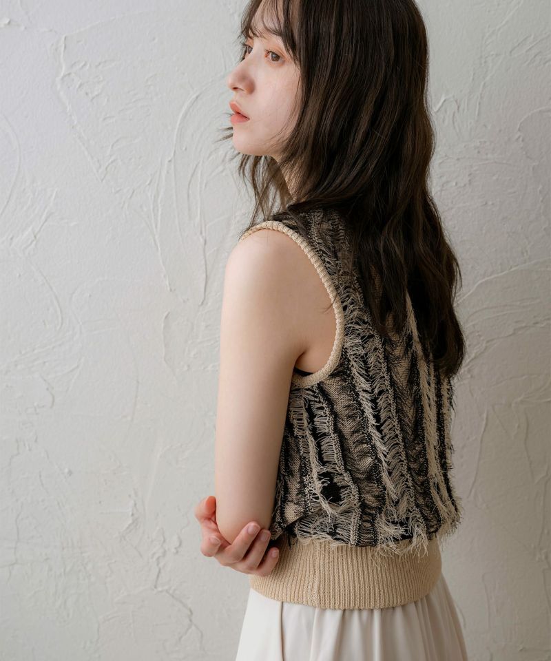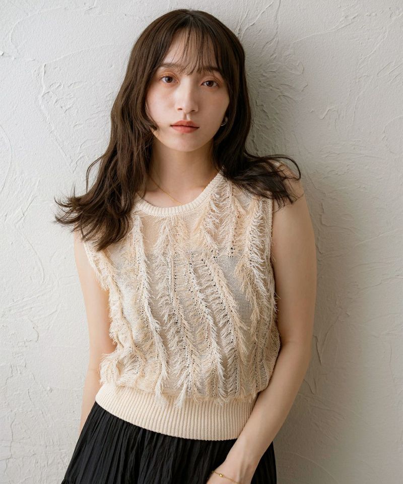 麻タッチフリンジニットベスト