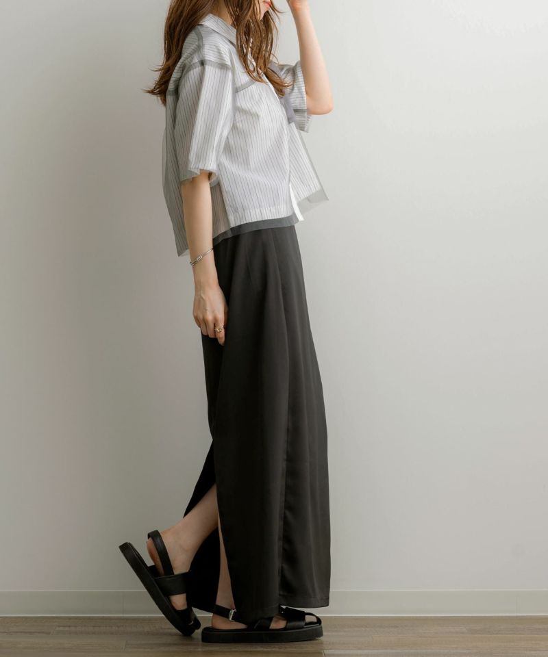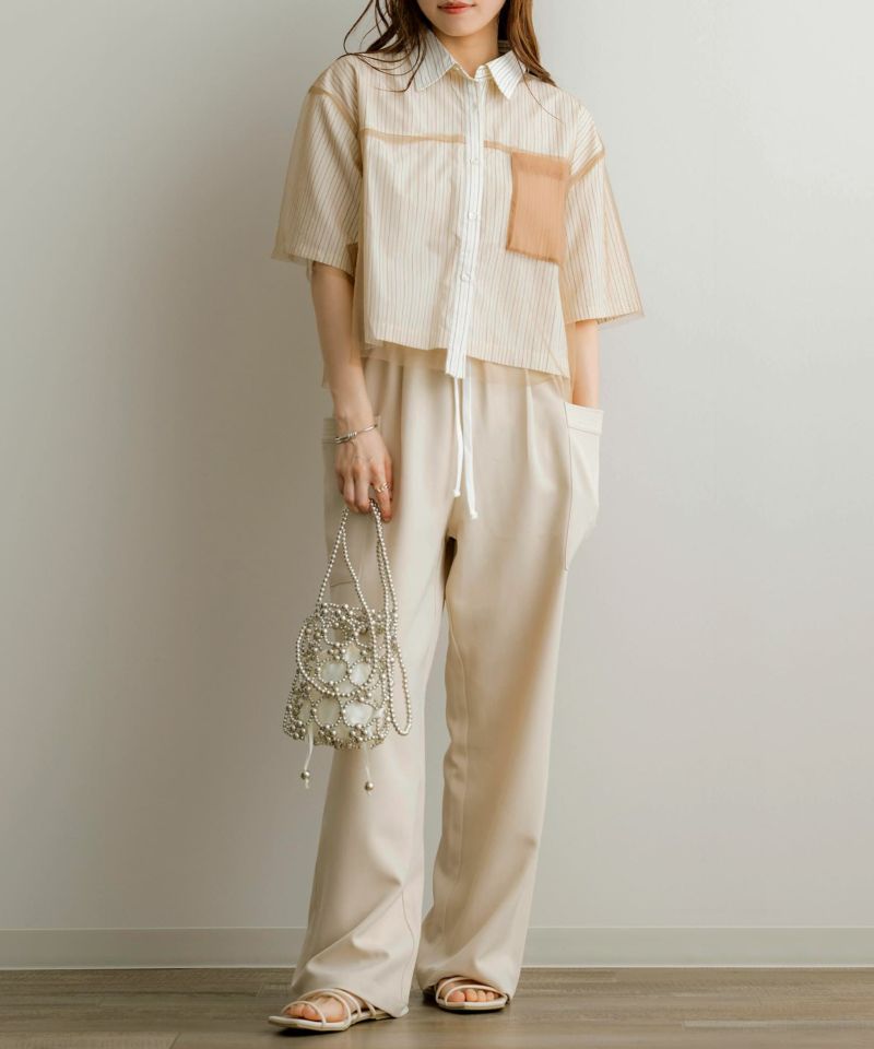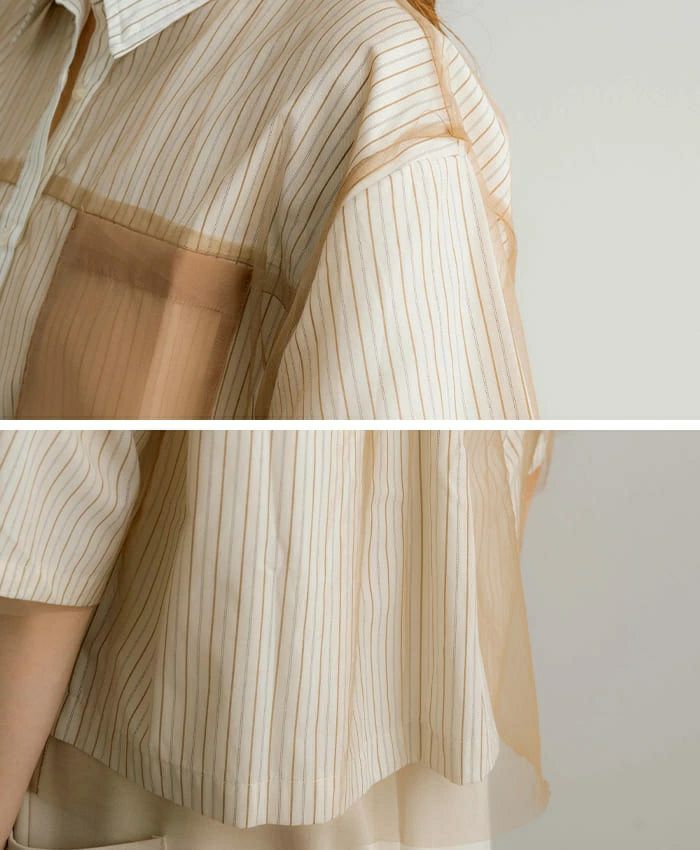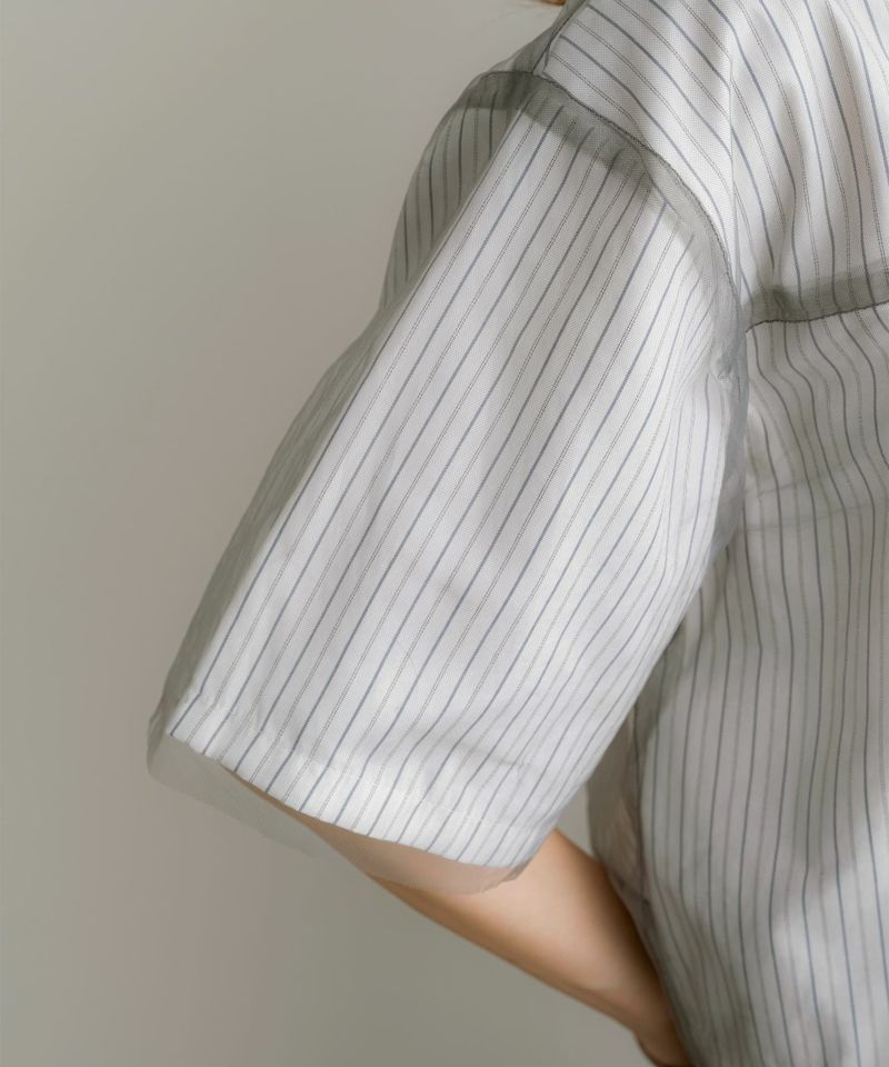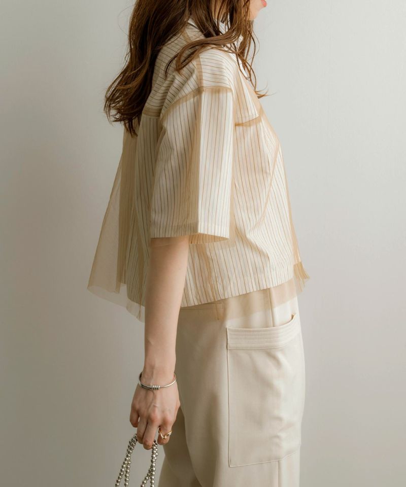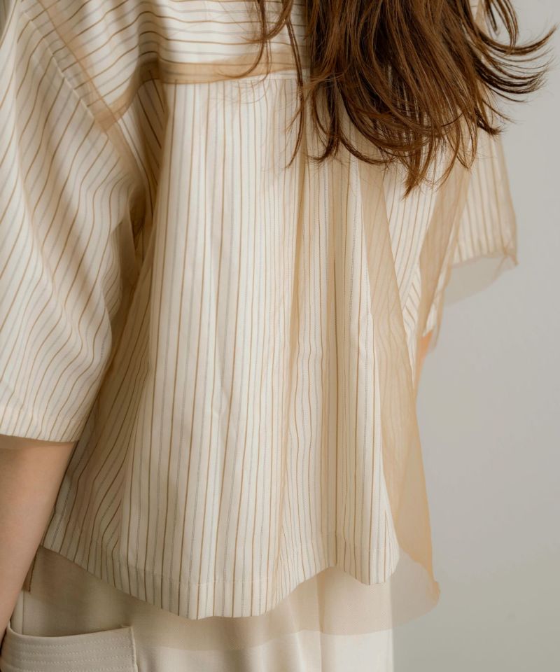 チュールレイヤードストライプ半袖シャツ