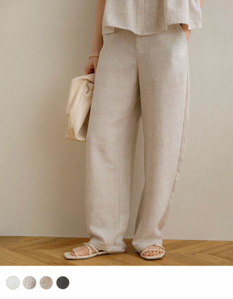 新色ライトグレーが登場!MIXリネンライクのナチュラルな雰囲気が上品見えするカーブパンツ。BASICなシルエットでどんなトップスにも合わせやすく着回しの効く1着です♪カーブシルエットが合わせるだけで今年らしいスタイルに仕上がります◎同素材の「MIXリネンキャミソールビスチェ」とセットアップで着るのもおすすめ♪