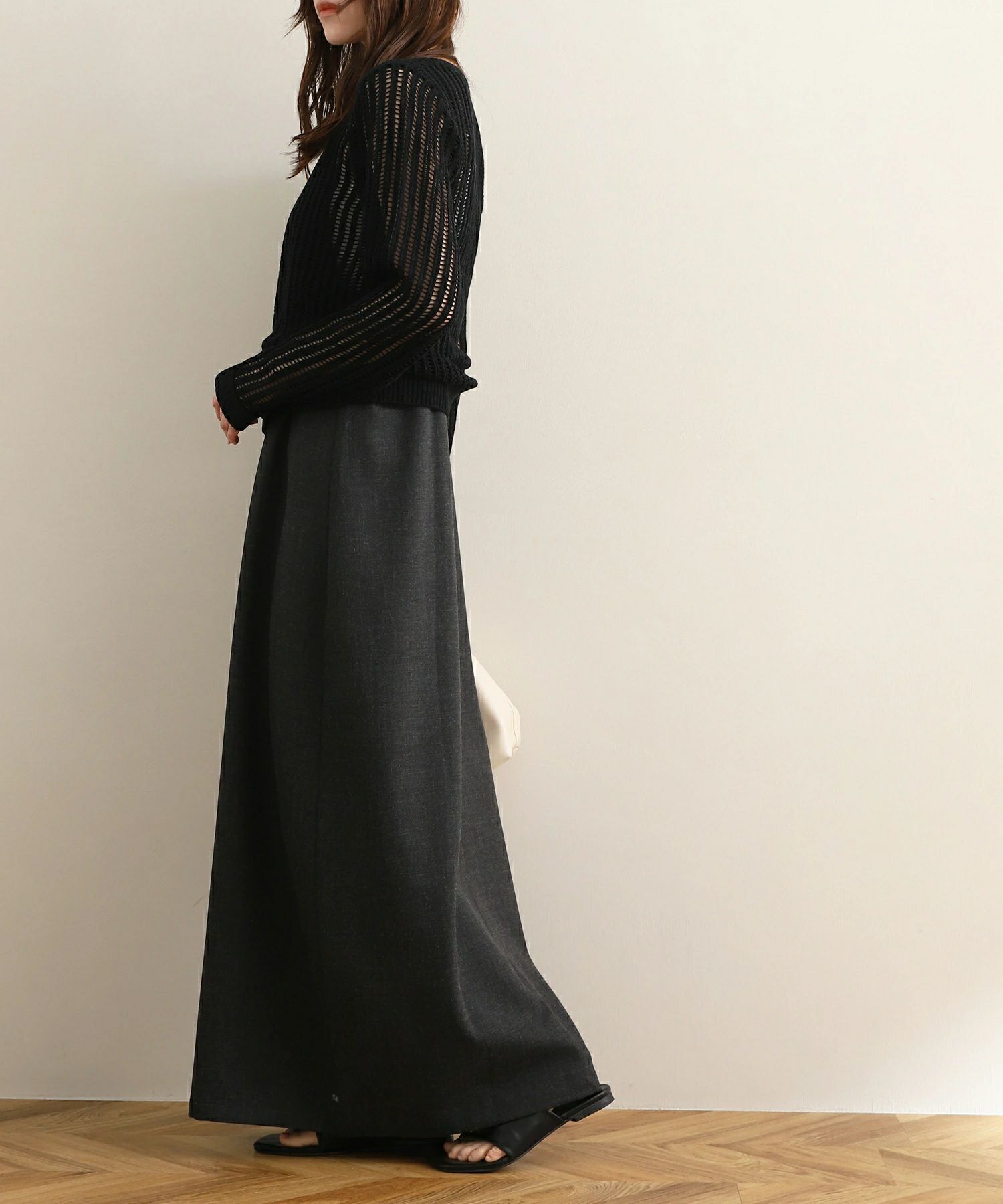 スクエアネックで首元はすっきりと抜け感をプラス♪