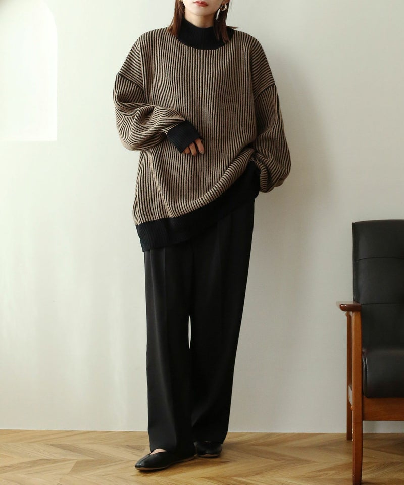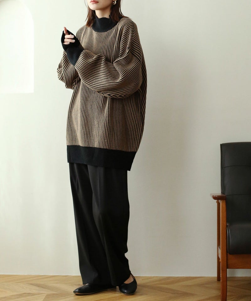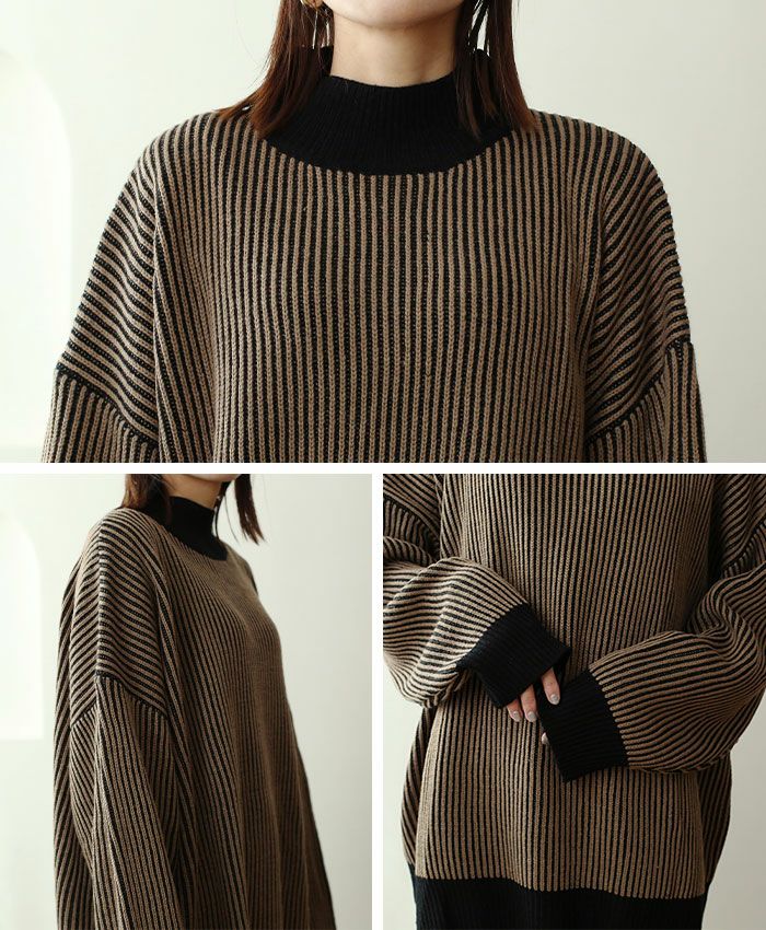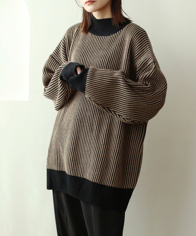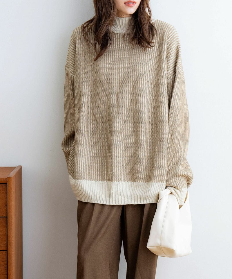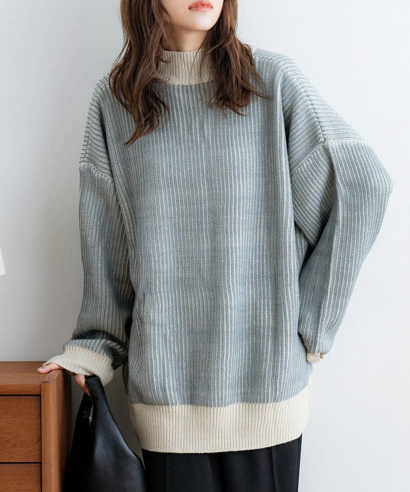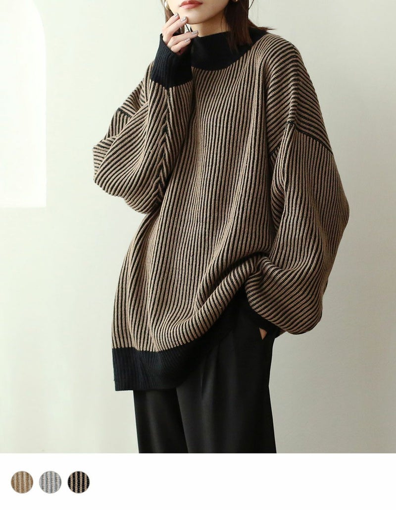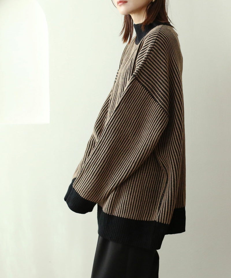 ストライプ配色ニット