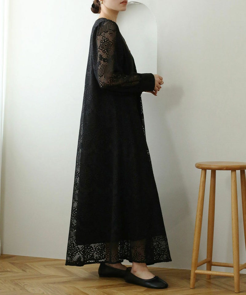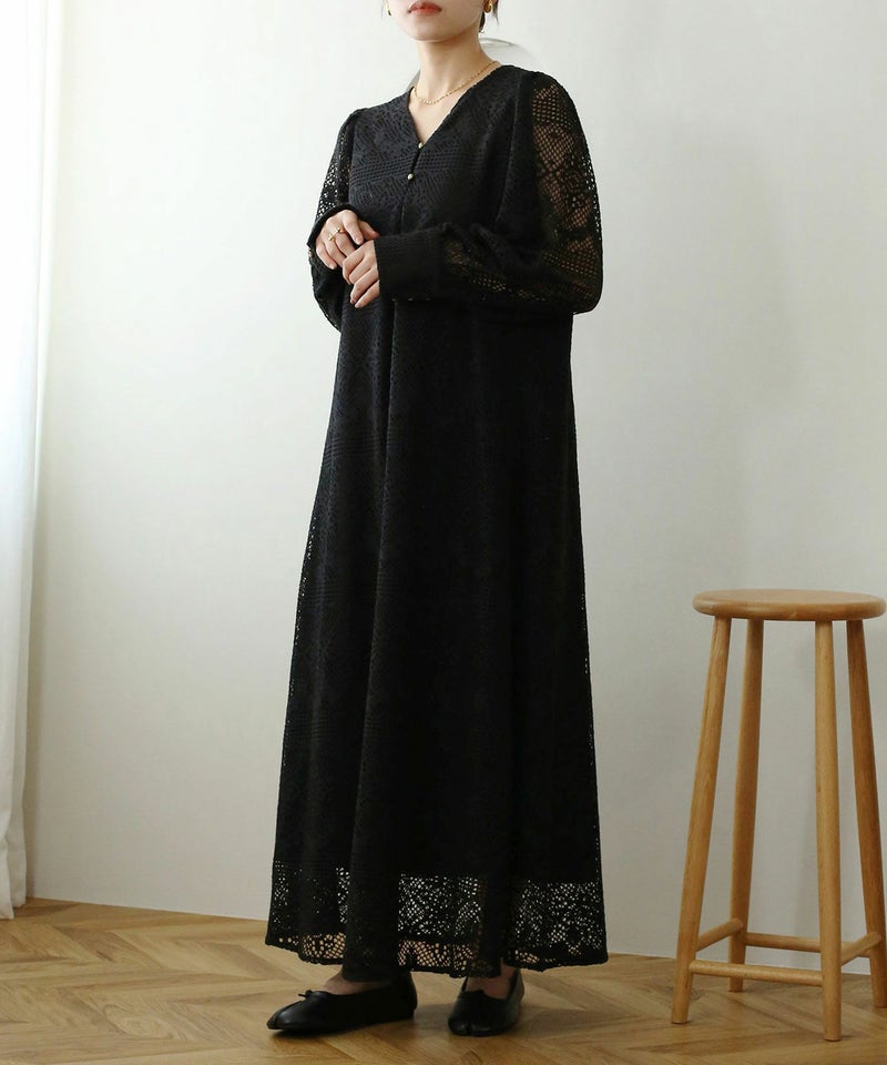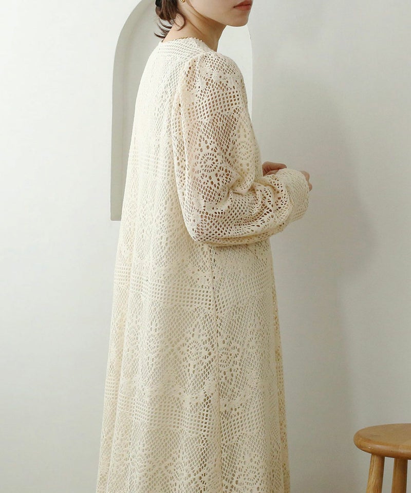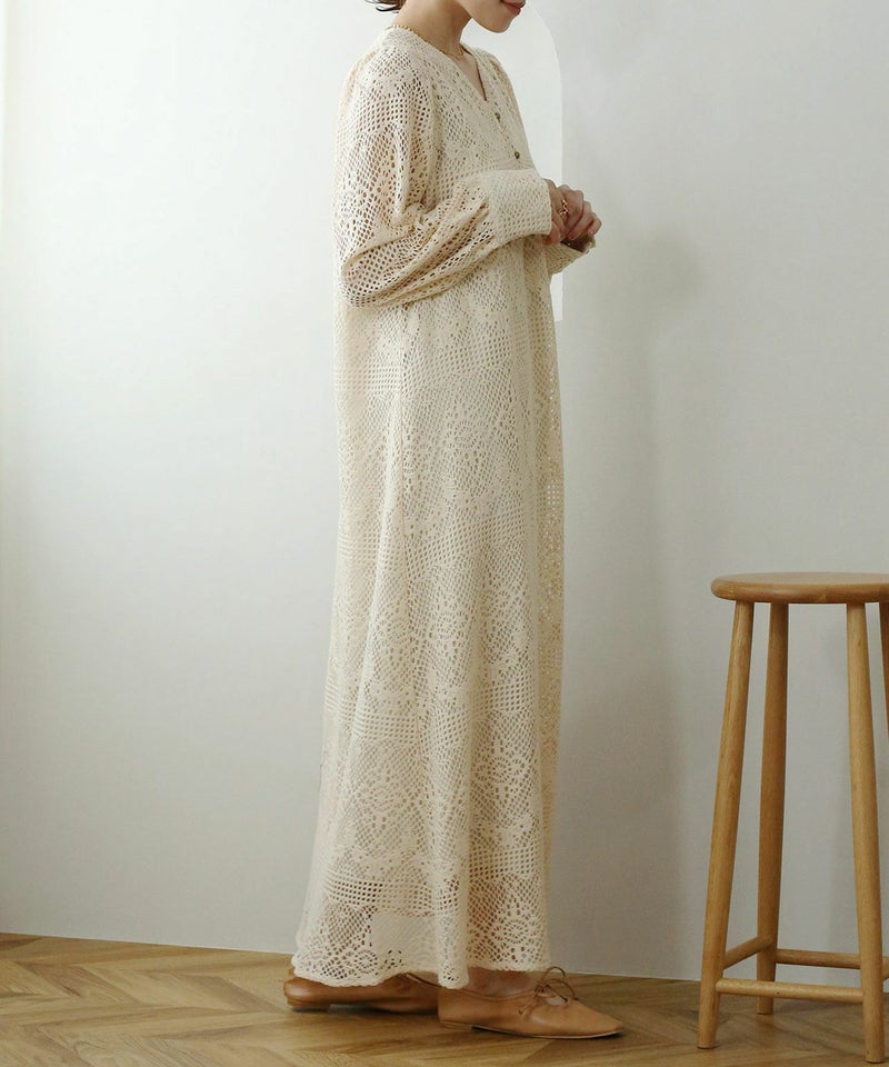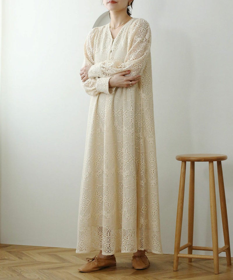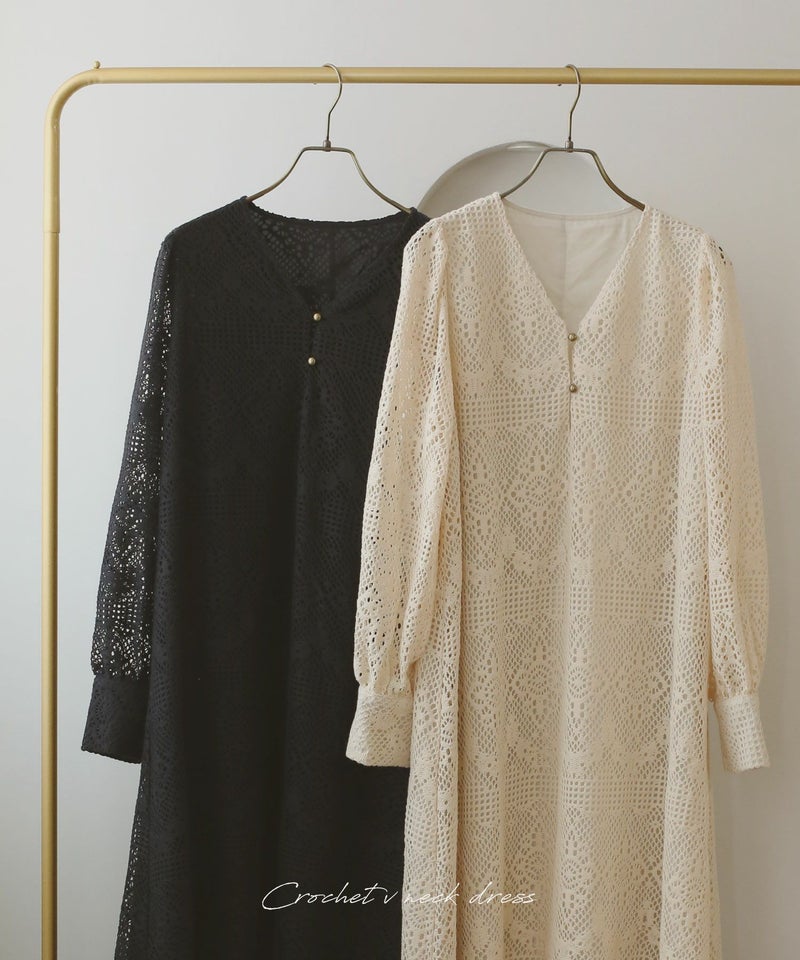 クロシェ編みVネックワンピース