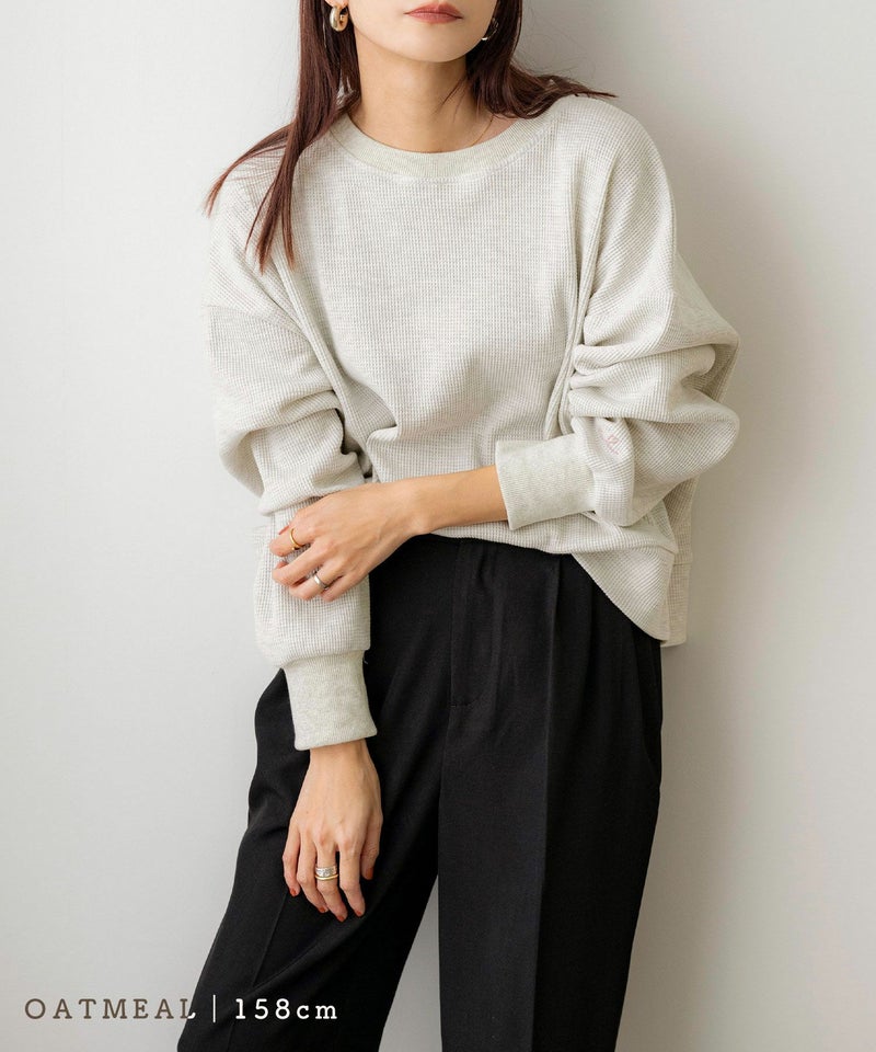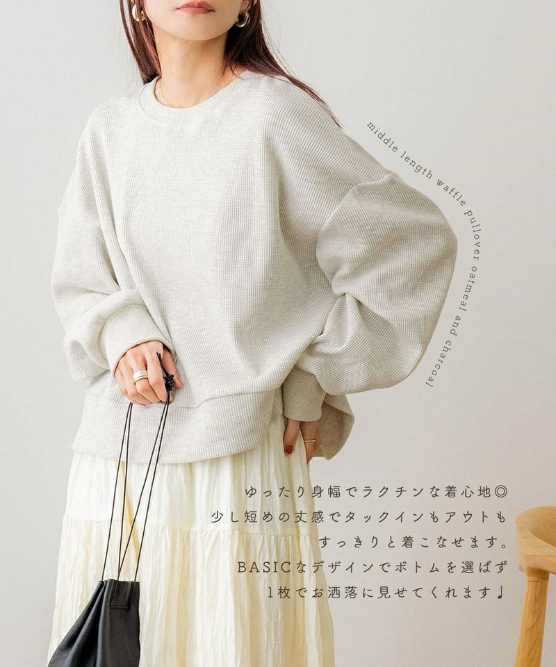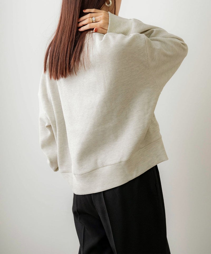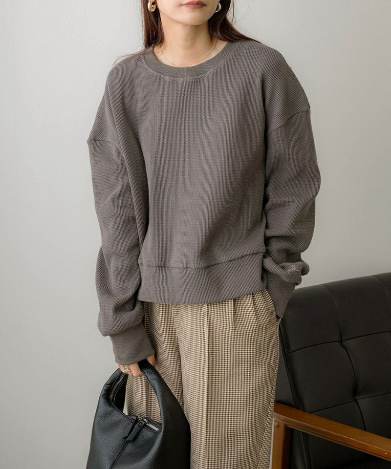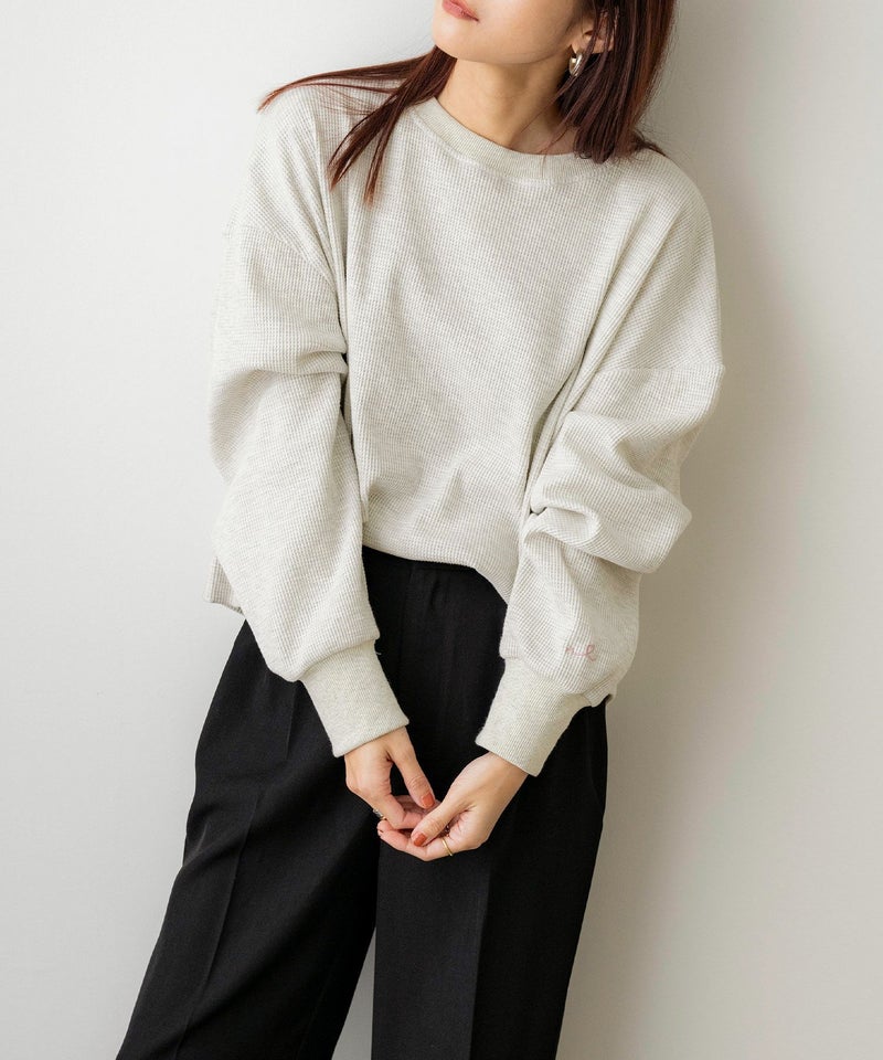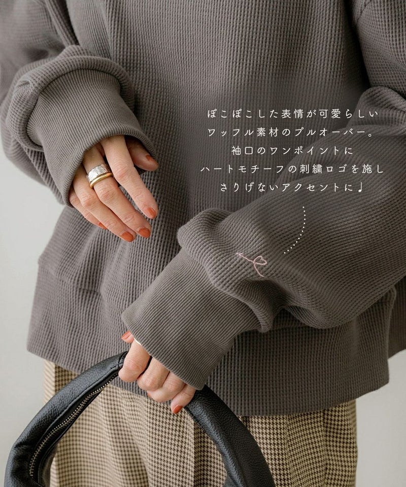 ミドル丈刺繍ワッフルプルオーバー