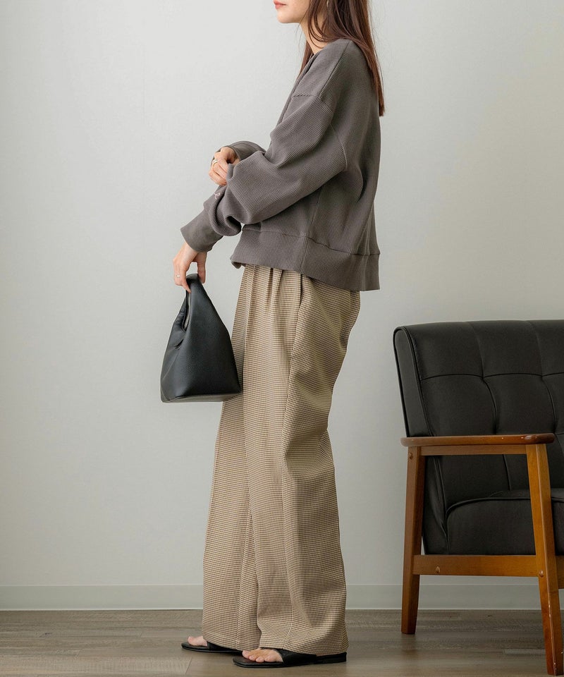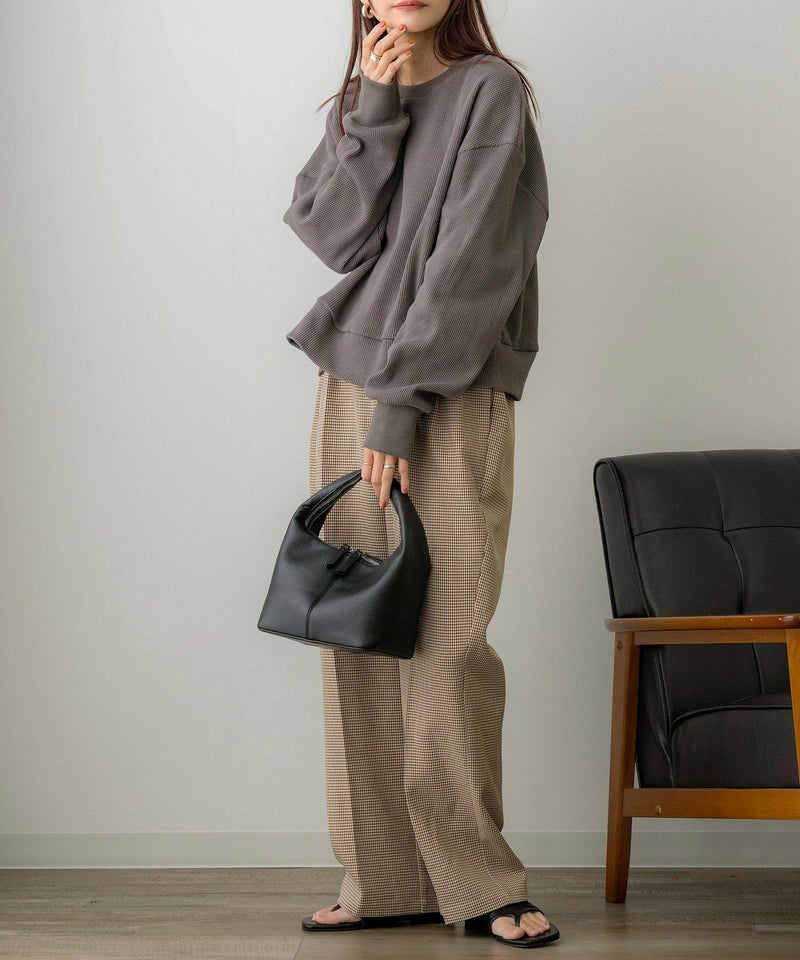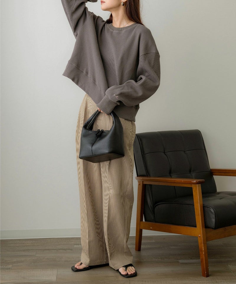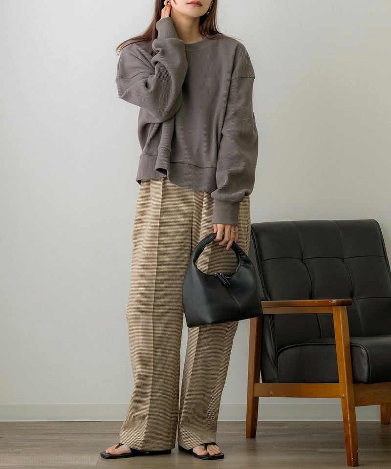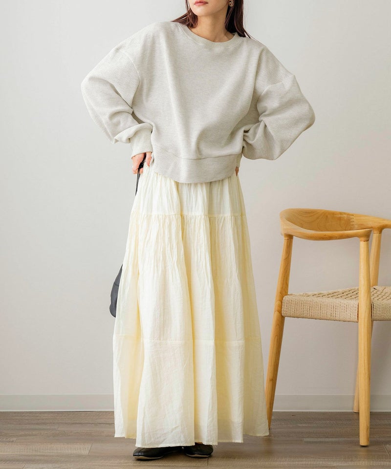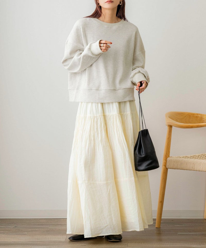 ミドル丈刺繍ワッフルプルオーバー