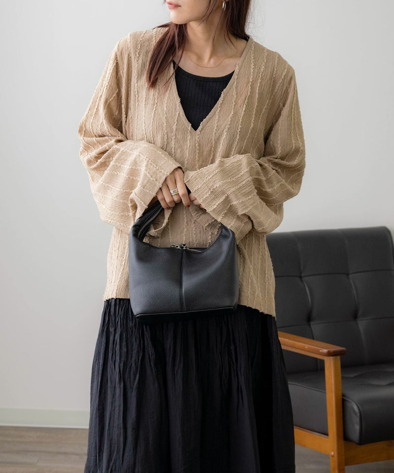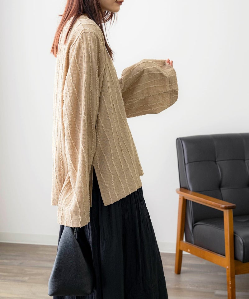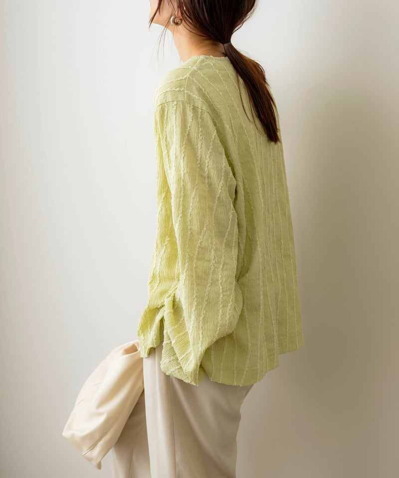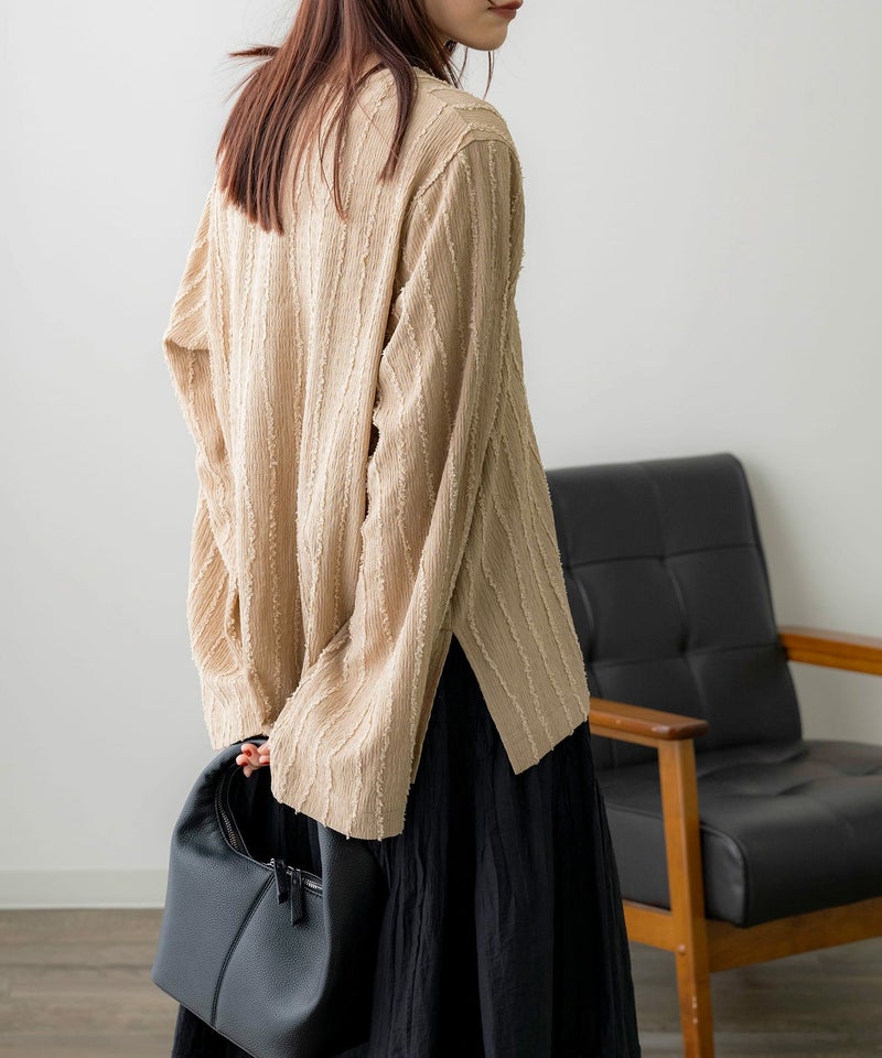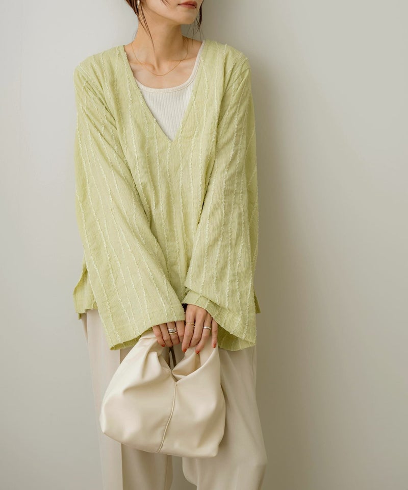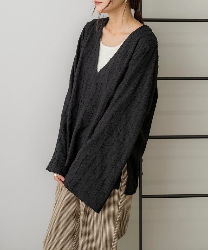 フリンジストライプVネックプルオーバー