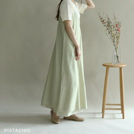 リネンVネックワンピース