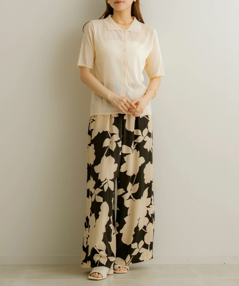 スキッパー透かし編みニットプルオーバー