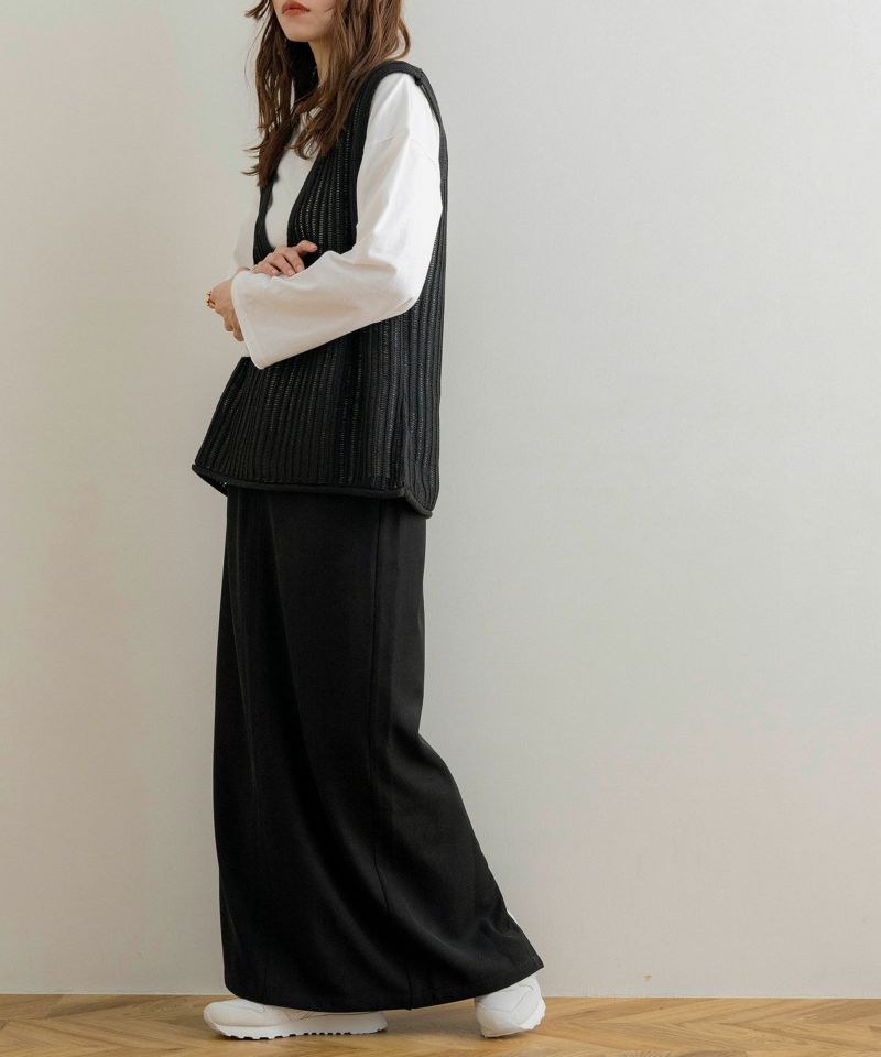 タックストレートワイドパンツ