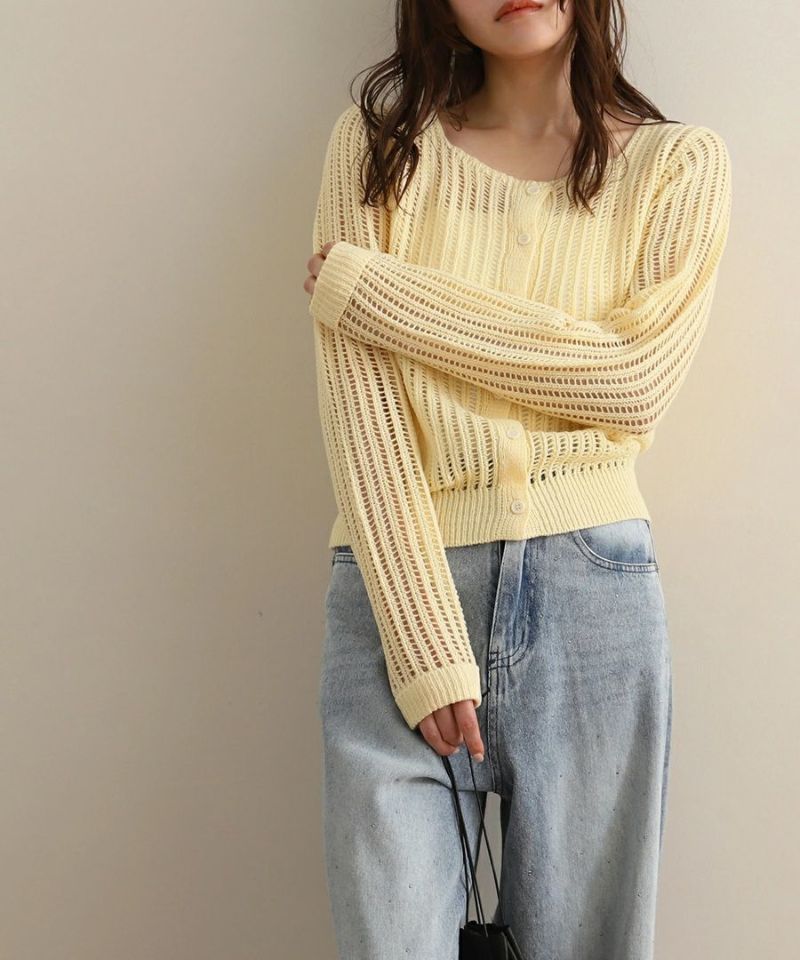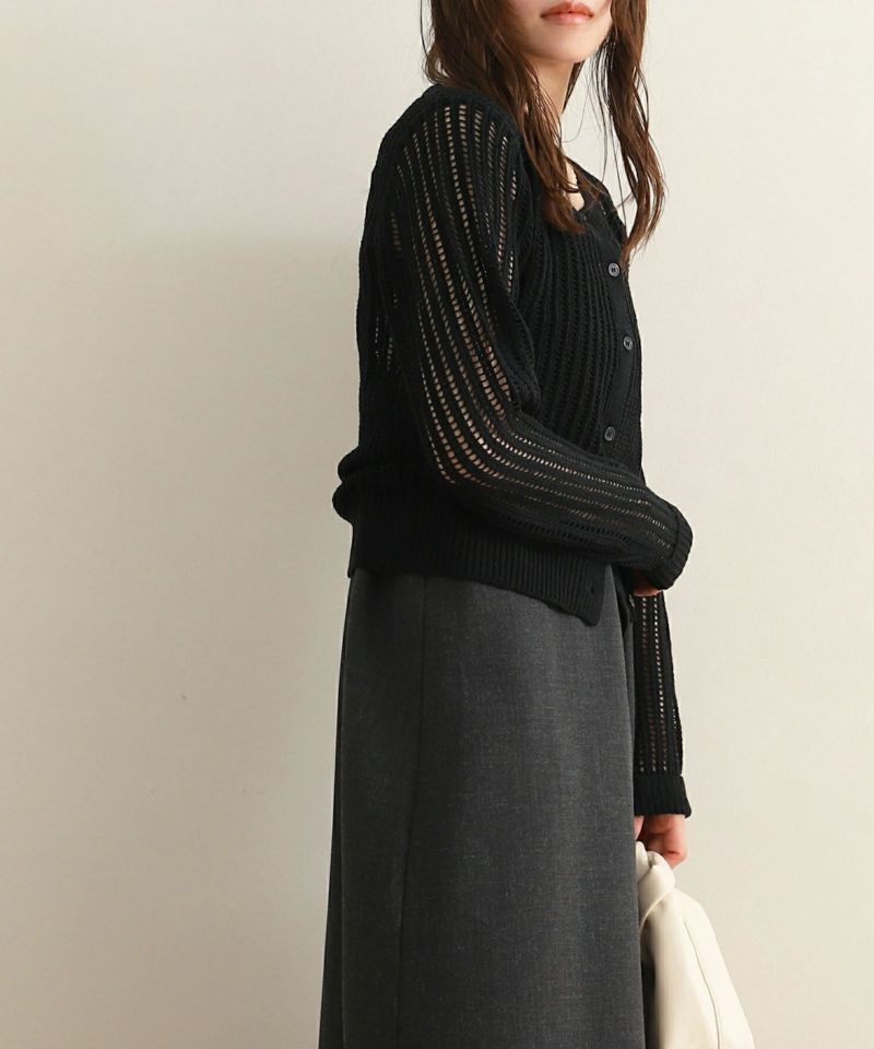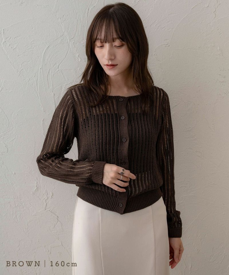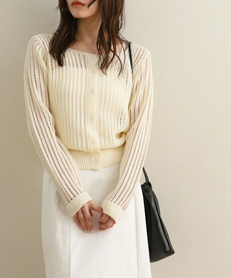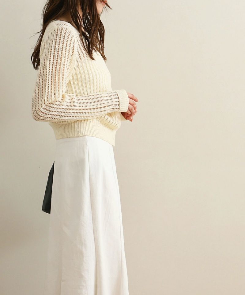 スクエアネックメッシュ編みニットトップス