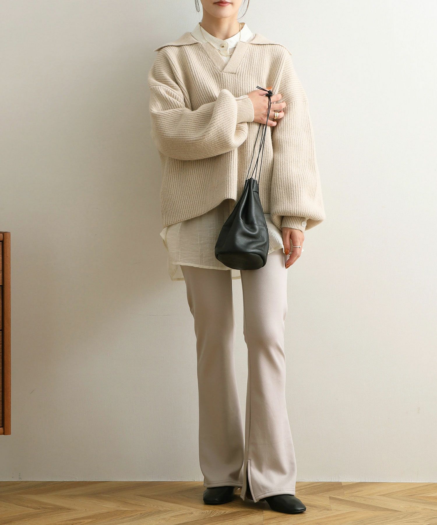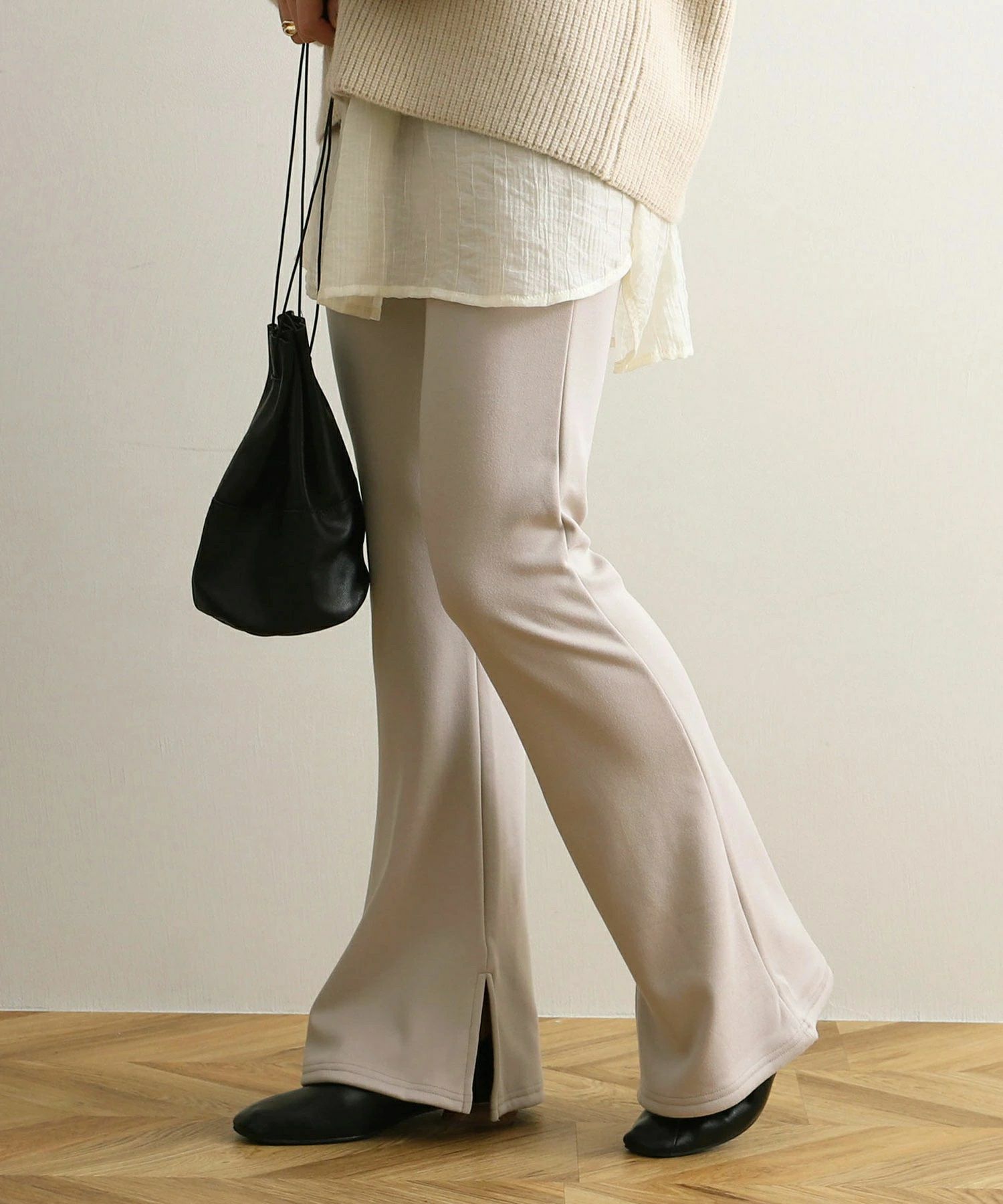 裏起毛が暖かく、肌触りがいいフレアパンツ♪シルエットが綺麗で、ラフなのにスタイルアップまで叶えられる1着です◎