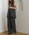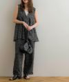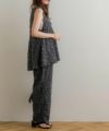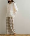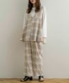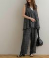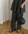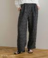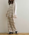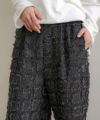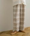 フリンジ×ブロック柄がコーディネートの主役になるワイドパンツ。落ち着いた色味とレトロ感あるデザインが大人可愛い1着♪同素材の「フリンジブロックフレアベスト」とセットアップで着るのもおすすめ◎
