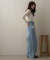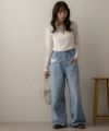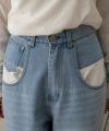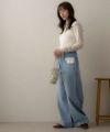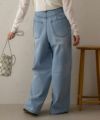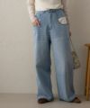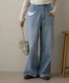 ポケットのデザインがアクセントになったワイドデニムパンツ。