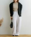 ウエストの折り返しデザインにより2wayで着こなせるスラックスパンツ。ルーズなシルエットながらもタック入りの綺麗なシルエットできちんと見え効果抜群です♪