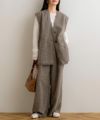 ダブルタックでシルエットがキレイなワイドパンツ。サマーツイードのMIX感がコーディネートのアクセントになりながら、BASICでゆったりとしたシルエットがどんなスタイルにもマッチし、着回し力の高い1本です♪