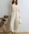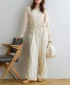 カジュアルなオールインワン。シンプルなデザインにフロントのドロストがアクセントに♪どんなトップスにも合わせやすい1着。