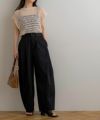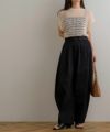 商品紹介 コクーンシルエットが今年らしく、コーディネートの主役になるパンツ。ツイルの程よいハリ感のある素材が綺麗なシルエットに♪