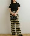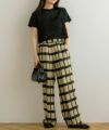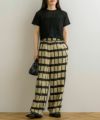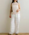 ブロックシアーのデザインが春夏らしく、爽やかで目を惹くワイドパンツ。ウエストゴムで楽ちんなのも嬉しいポイント♪