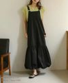 カジュアルな素材感と、裾のバルーンシルエットが女性らしいジャンパースカート♪
