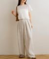ダブルタックでシルエットがキレイなワイドパンツ。サマーツイードのMIX感がコーディネートのアクセントになりながら、BASICでゆったりとしたシルエットがどんなスタイルにもマッチし、着回し力の高い1本です♪