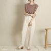 真っ白じゃないキナリ色、コロンとかわいいゴールドボタン。"なんかかわいい"を形にしたハイウエストテーパードデニムです。ナチュラルで控えめ、癖のないシンプルさで主役のトップスを引き立ててくれます。サイズはM・L。アイボリーの他に、色褪せたようなブラウンの2カラー展開。他にないサツマイモのようなこっくりとしたブラウンデニムもおすすめです。どちらのお色もオールシーズン使え、トレンドに左右されない定番のカラーデニムが完成しました。