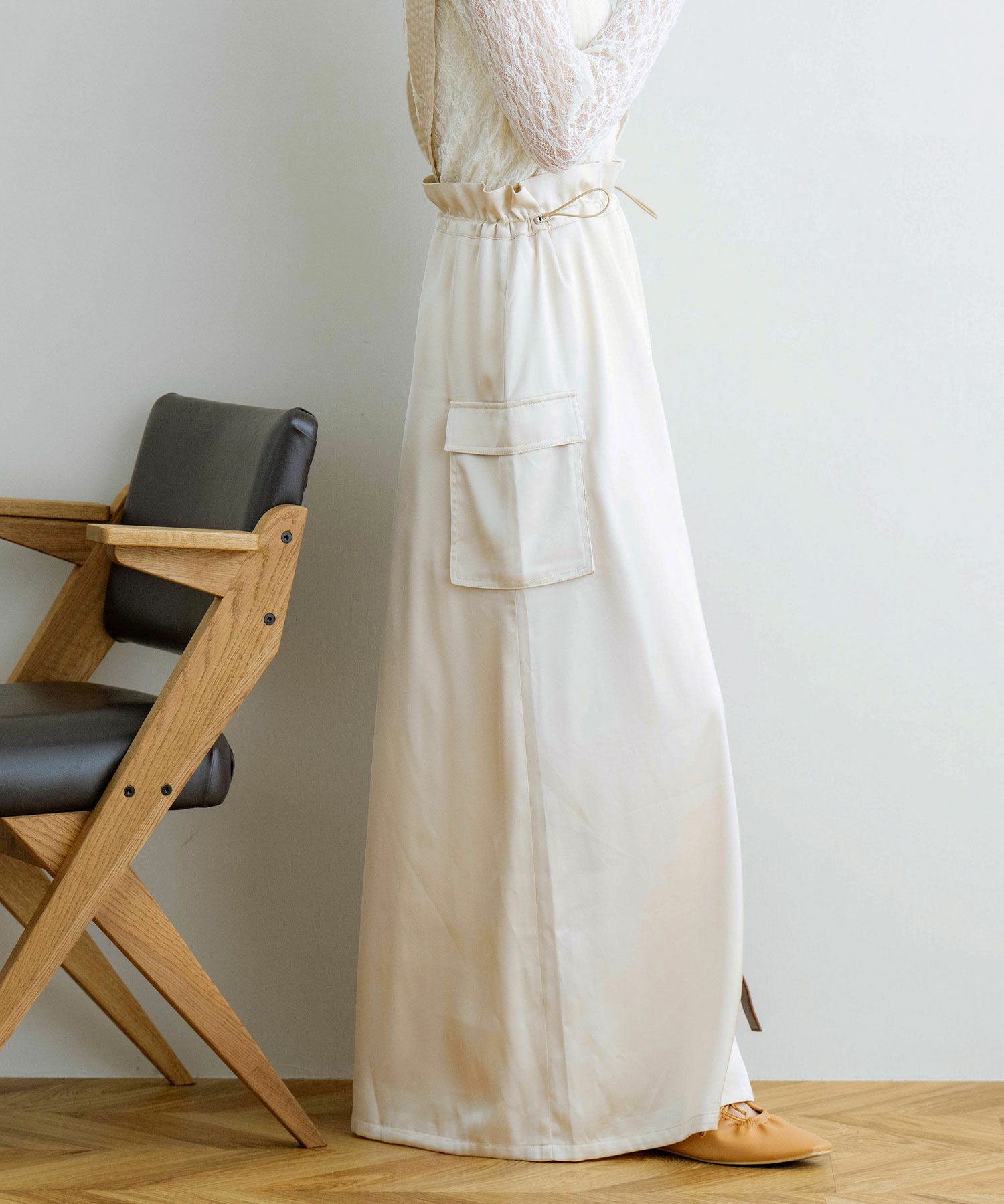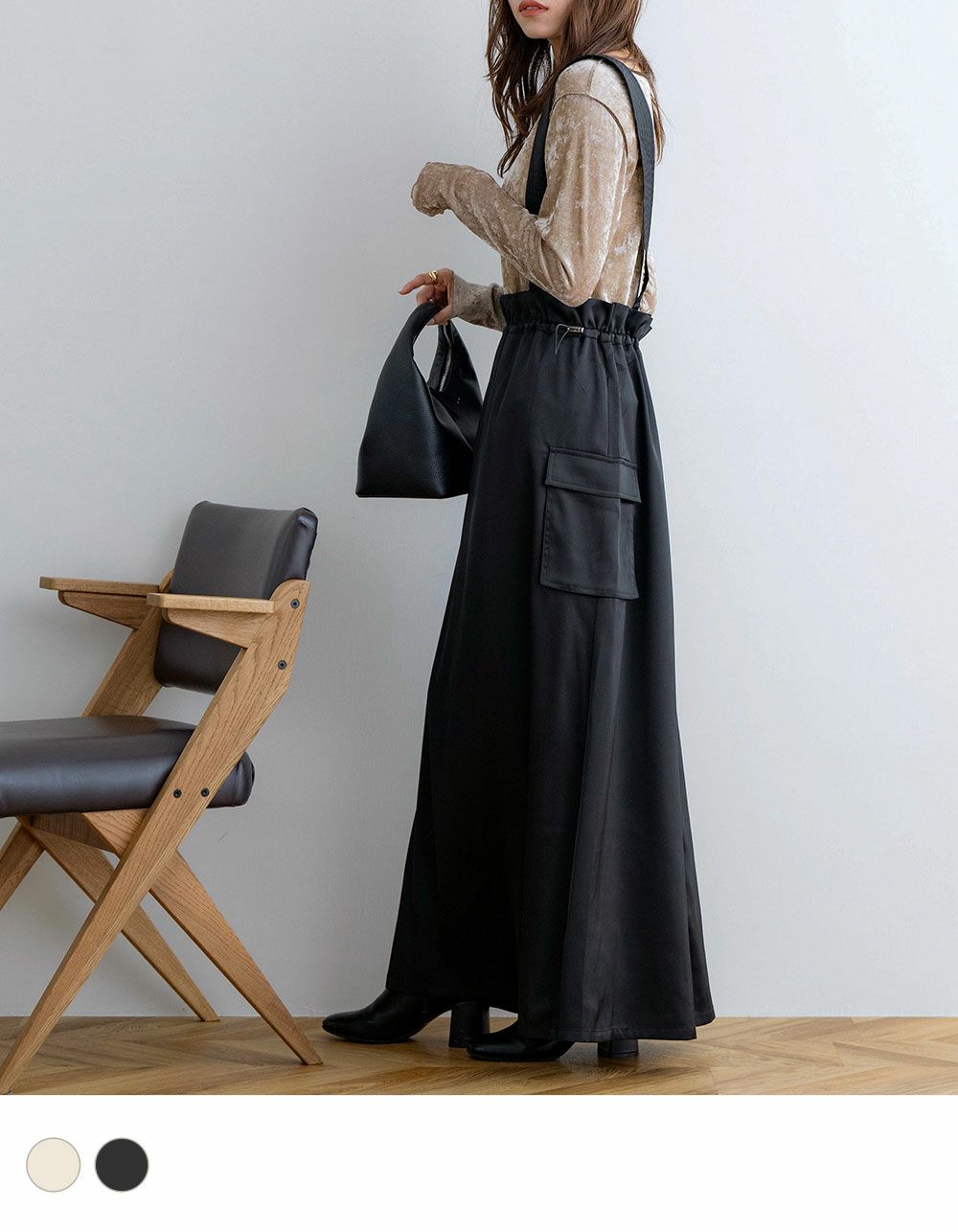 サスペンダー付きドロストサテンスカート