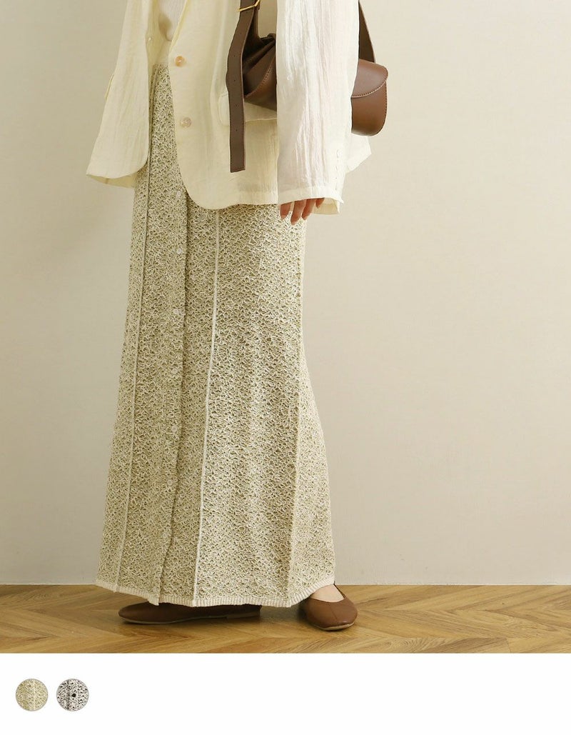 春夏にぴったりのシャリ感のあるMIXニットが爽やかなナロースカート。