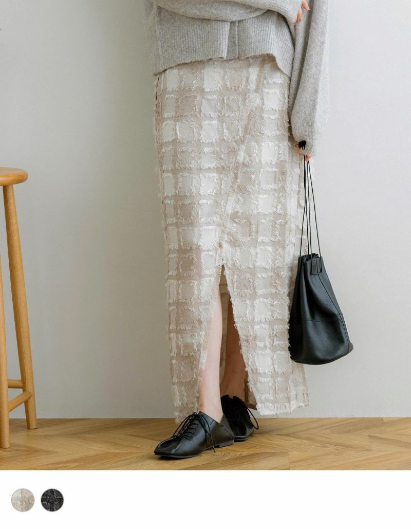 フリンジチェックスリットスカート