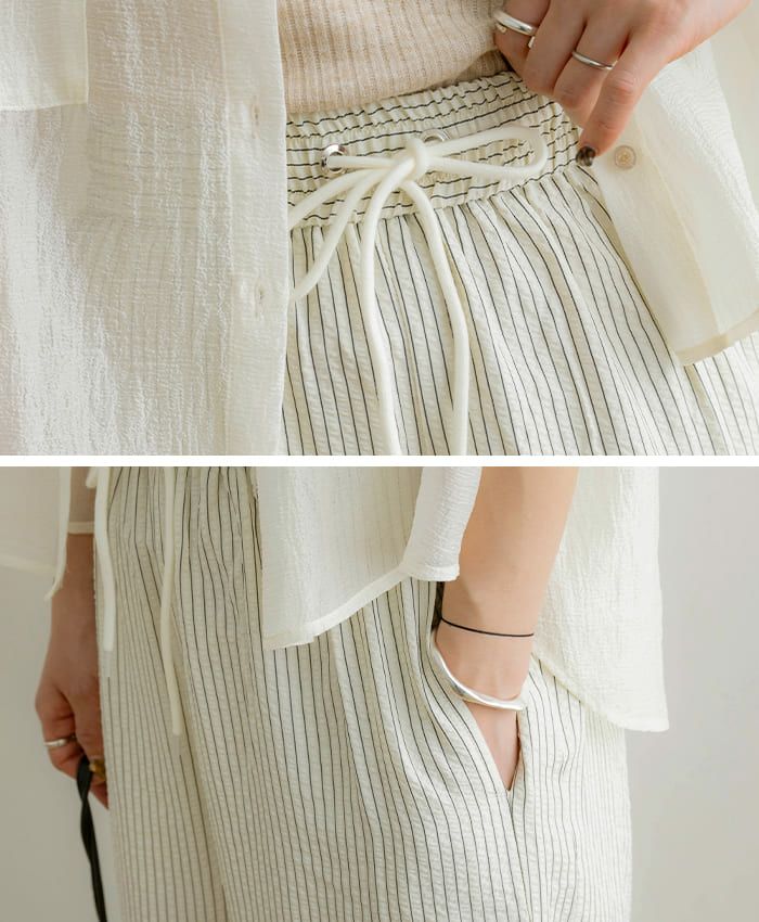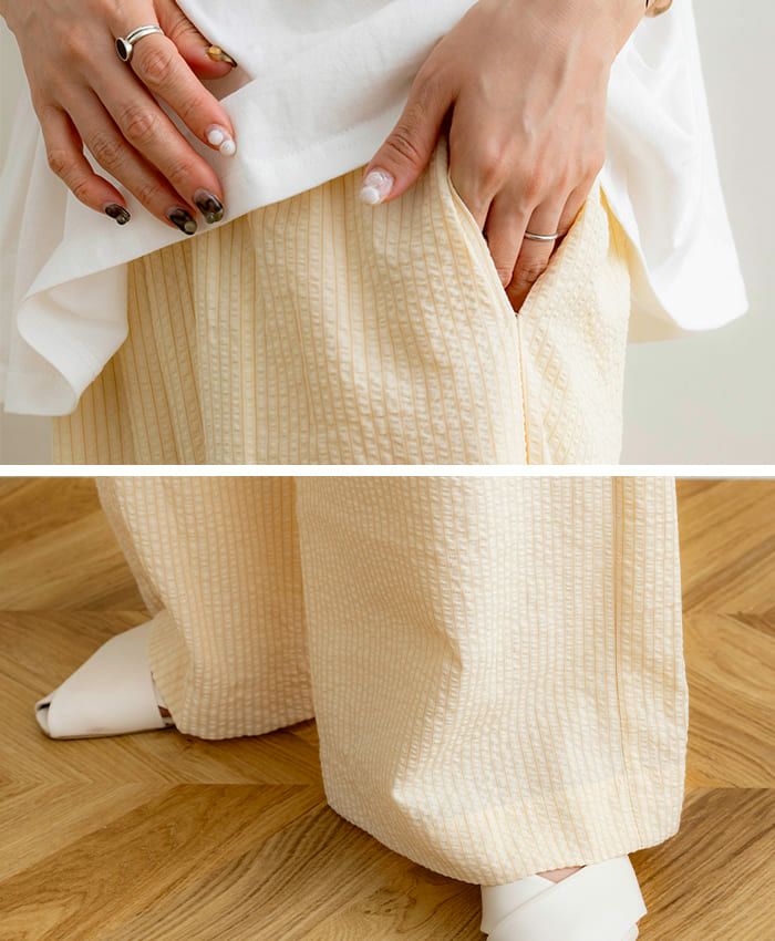 BASICで着回しの効く定番パンツやスカートから、旬を取り入れたコーディネートの主役になるボトムまで幅広く展開