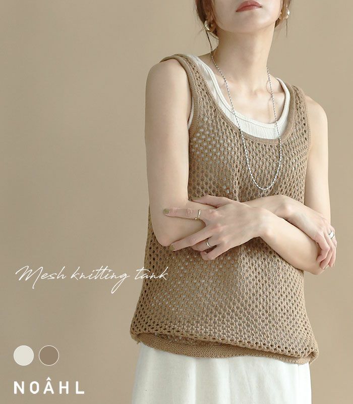 涼しげでヘルシーな透け感のメッシュタンク。レイヤードスタイルを楽しめる1着です♪タックインはもちろん裾出しでもバランスの取りやすい着丈が◎