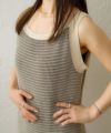 凹凸感のあるギンガムチェックが表情のある1着。ストレートなシルエットで体のラインを拾いすぎません。シャリ感のある春夏仕様のニット素材で涼しく着ていただけます。