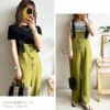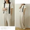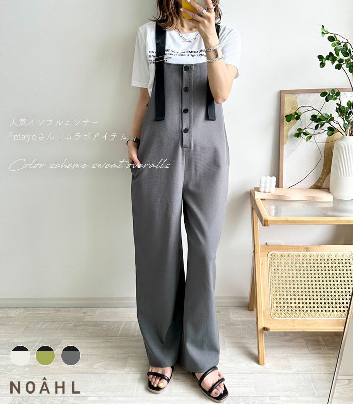 肩紐の配色がオシャレなサロペットです。柔らかなスウェット素材がラフな着心地です◎カジュアルになりすぎないニュアンスカラーもポイント。タイトすぎずオーバーすぎないシルエットは体のラインを拾わずスタイルアップ◎