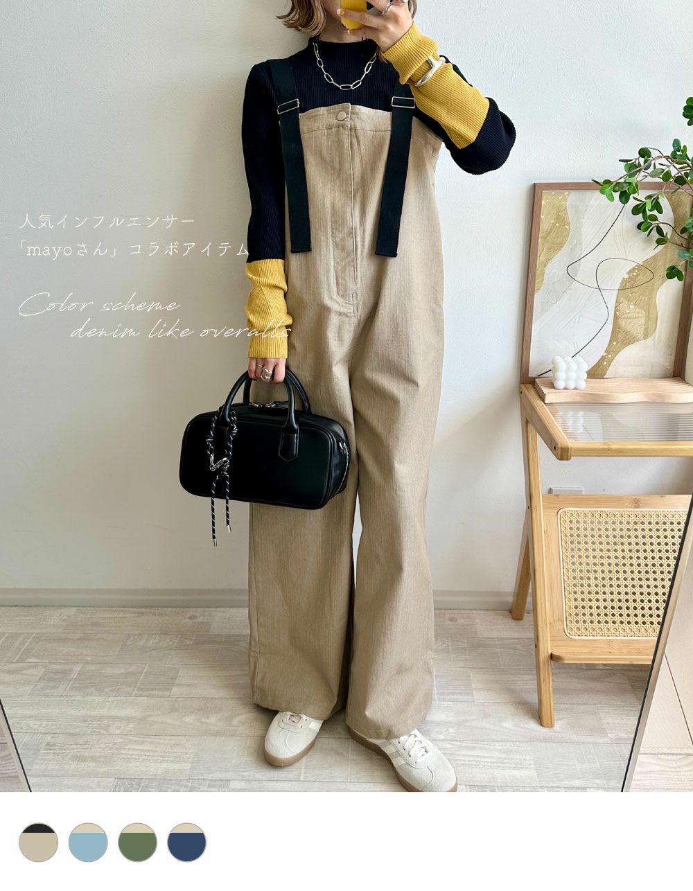 《大人気インフルエンサー「mayo」さん×NOAHLのコラボアイテム第3弾》デニムライクな風合いが大人カジュアルなサロペットが登場!肩紐の配色ベルトがアクセントな1着です♪ゆったりとした、ややルーズなシルエットがこなれ感をプラス◎体のラインを拾わず体型カバーが叶うのも嬉しいポイントです!よりカジュアルなデニムカラー2色と、大人っぽく着られるアースカラー2色の4色展開◎