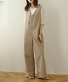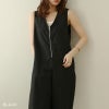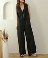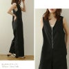Vネックがデコルテ周りをすっきり見せてくれるオールインワン。ジップデザインがカジュアルダウンする、お出かけにもデイリーにも使いやすい1着です♪