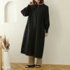 シンプルなデザインにハーフジップがポイントのロングワンピース♪