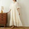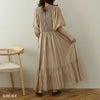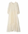 ドッキングデザインに、シアー素材が夏らしいロングワンピース。Vネックデザインでデコルテ周りをすっきり見せ、ボリュームたっぷりのギャザー切り替えがふわっと女性らしいシルエットに♪