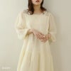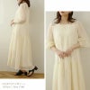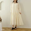 シアー素材が夏らしいロングワンピース。Vネックデザインでデコルテ周りをすっきり見せ、ボリュームたっぷりのギャザー切り替えがふわっと女性らしいシルエットに♪
