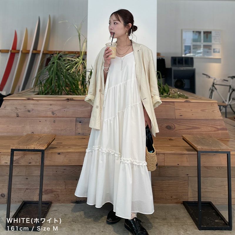 アシンメトリーティアードキャミワンピース