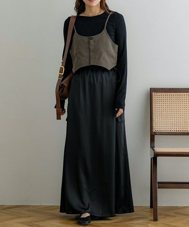サテンレイヤードキャミワンピース