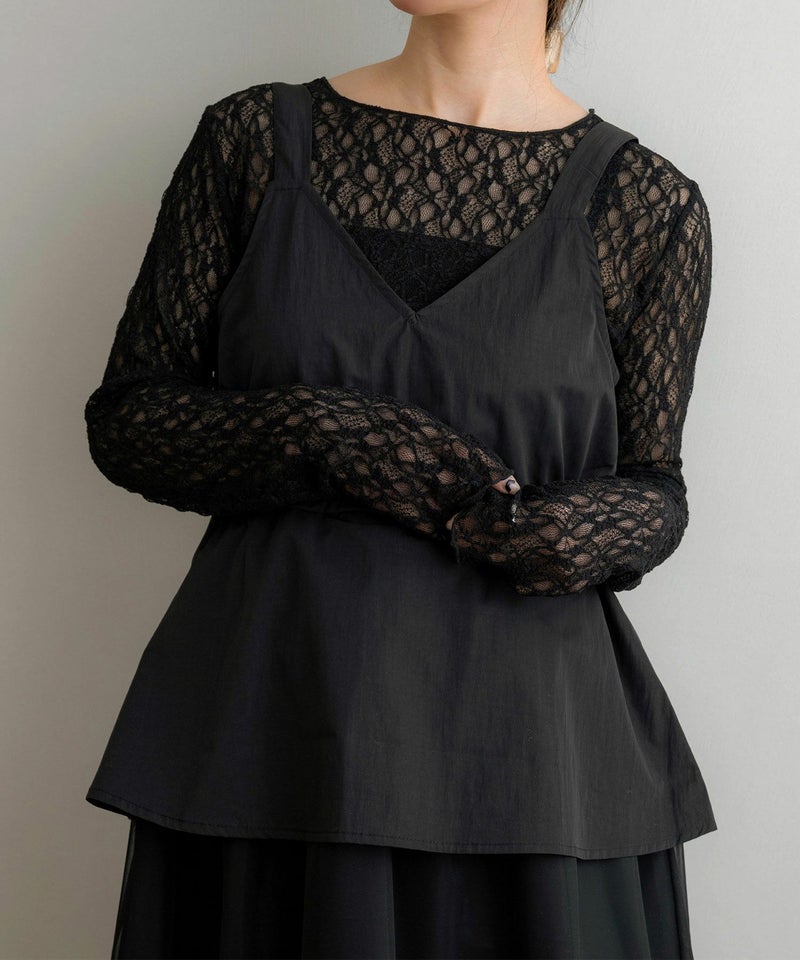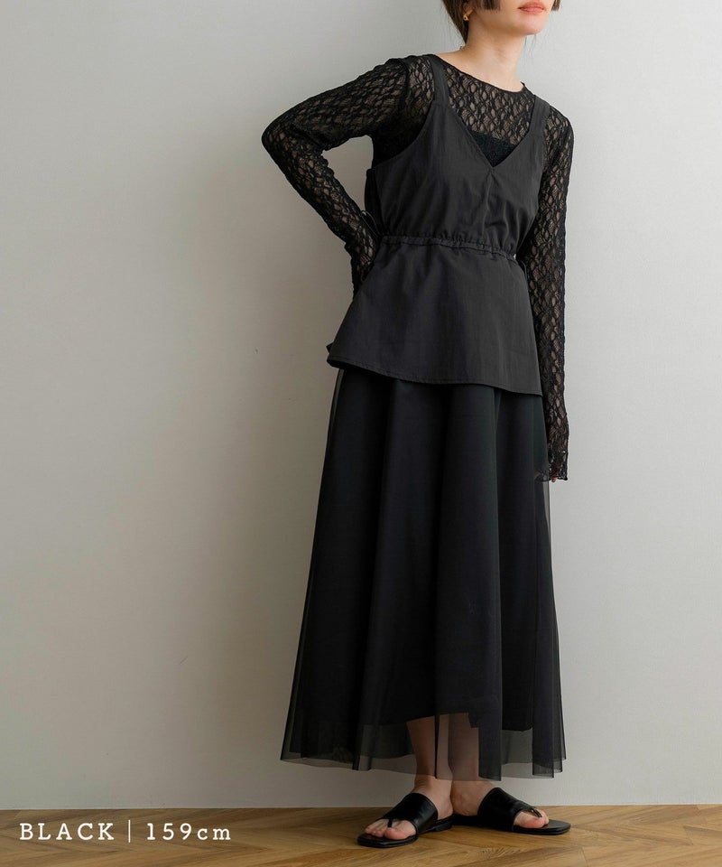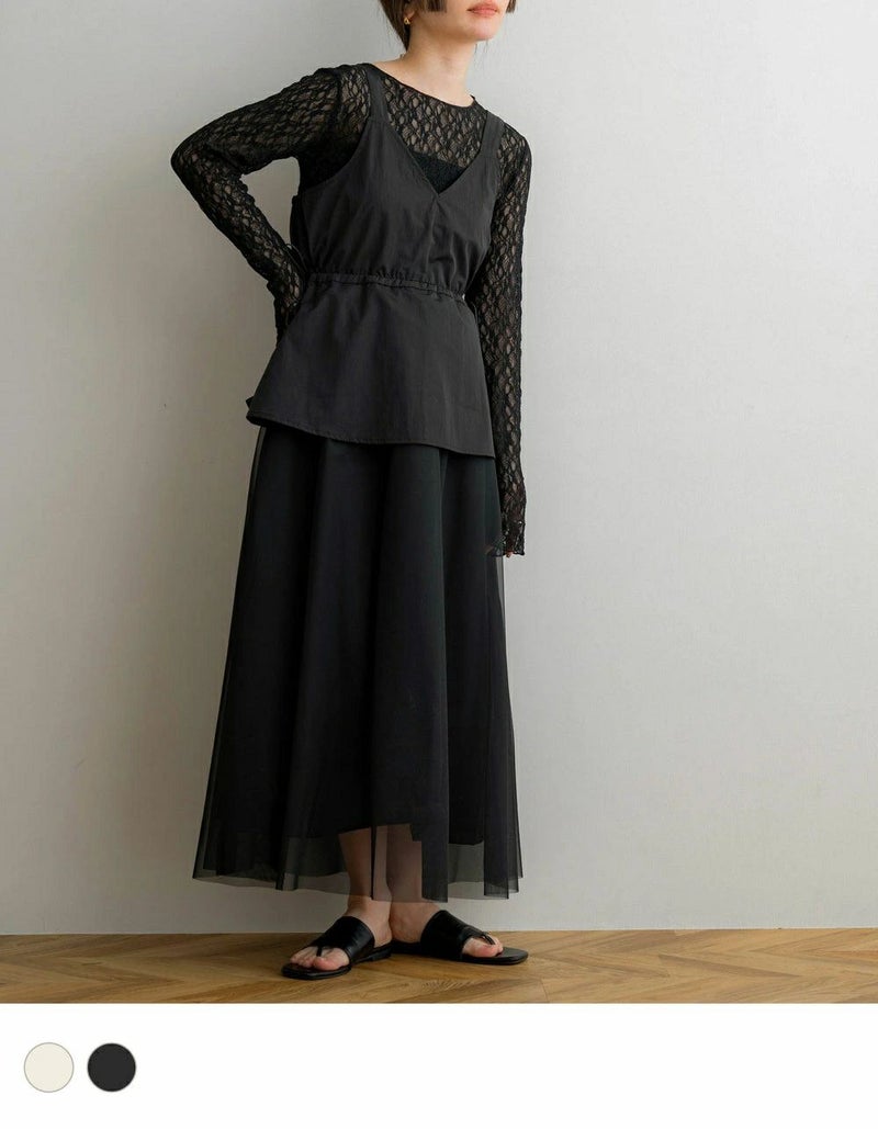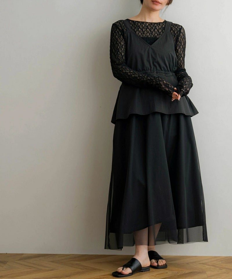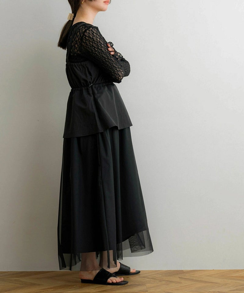 タフタレースアップキャミワンピース