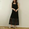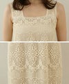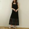 《フリーアナウンサー「内山絵里加」さんとNOAHLの初のコラボアイテム》クロッシェ編みがシーズンムードを引き立てるノースリワンピース。1枚でもサマになり、シャツなどとのレイヤードも可愛い1着で、お洒落を楽しみつつ体型カバーや日差し対策が叶います♪深すぎない裾のスリットと、膝丈程の裏地付きで足元は涼しげに◎合わせ次第で春から夏まで長く楽しめるワンピースが完成しました。