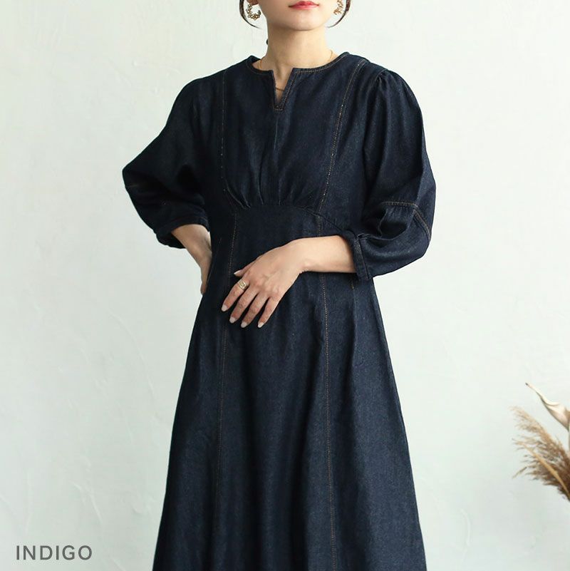 ランタンスリーブデニムワンピース