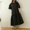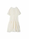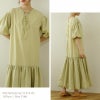 《フリーアナウンサー「内山絵里加」さんとNOAHLの初のコラボアイテム》女性らしいシルエットがオトナ可愛いふんわりワンピース。前後2wayの襟元はニュアンスボタンとレースアップで違った雰囲気を楽しめます♪パフスリーブと裾のバルーンシルエットが女性らしいシルエットに。春夏らしいアイボリー、ピスタチオと、定番で扱いやすいブラックの3カラー展開◎