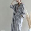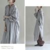 軽く柔らかな綿混ロングシャツワンピース。織り柄のマルチストライプ生地を使用し、ナチュラルな風合いに仕上げています。襟元の配色とくるみボタンで遊び心をプラスし、クールな印象のストライプシャツにデイリーに着やすい抜け感とデザイン性をプラスしました。全体的にゆったりとしたサイジングのため、肌にまとわりつかず、さらっと軽やかな着心地です。サイドポケットやゴム入りの袖口、前ボタンなどママさんが着やすい機能性も嬉しいポイント。デニムやレギンス、ストレートパンツなど、お手持ちのボトムを合わせていただくだけで、オシャレにまとめてくれる長く使えるワンピースです。