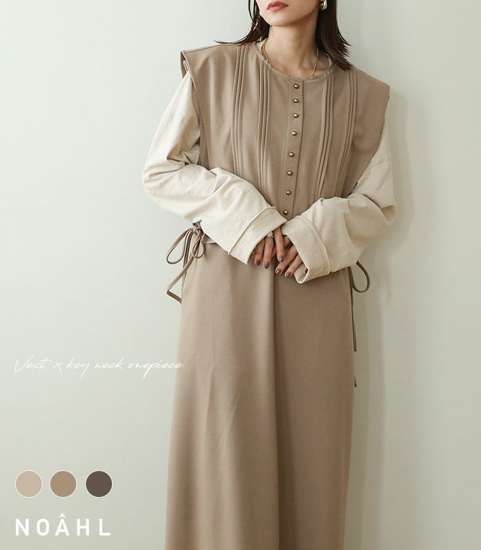 検索ワード:ワンピース ベスト セット マキシワンピース ロングワンピース キーネック Vネック 綺麗め ベスト レイヤード ロング マキシ レディース ベージュ モカ デザイン レディライク シルエット 無地 カジュアル シンプル 大人 ゆったり ママ レディースファッション 高見え 2022春 ママコーデ ニュアンスカラー 送料無料 メール便 noahl ノアル