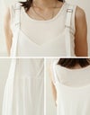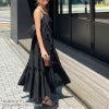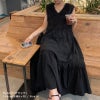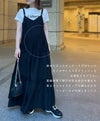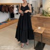 【はらちゃんコラボアイテム】アシンメトリーなティアードデザインが目を惹くキャミワンピースは、太って見えがちなギャザーデザインもできる限り太って見えないことを意識したシルエットで着痩せを実現。着痩せ術のプロが生み出した他にはない1着です◎斜めに入ったティアードデザインが甘さの中にもスタイリッシュなお洒落さをプラス。肩紐調整で胸元の空き具合や着丈を変えるとスタイリングの幅も広がるワンピースが完成しました♪